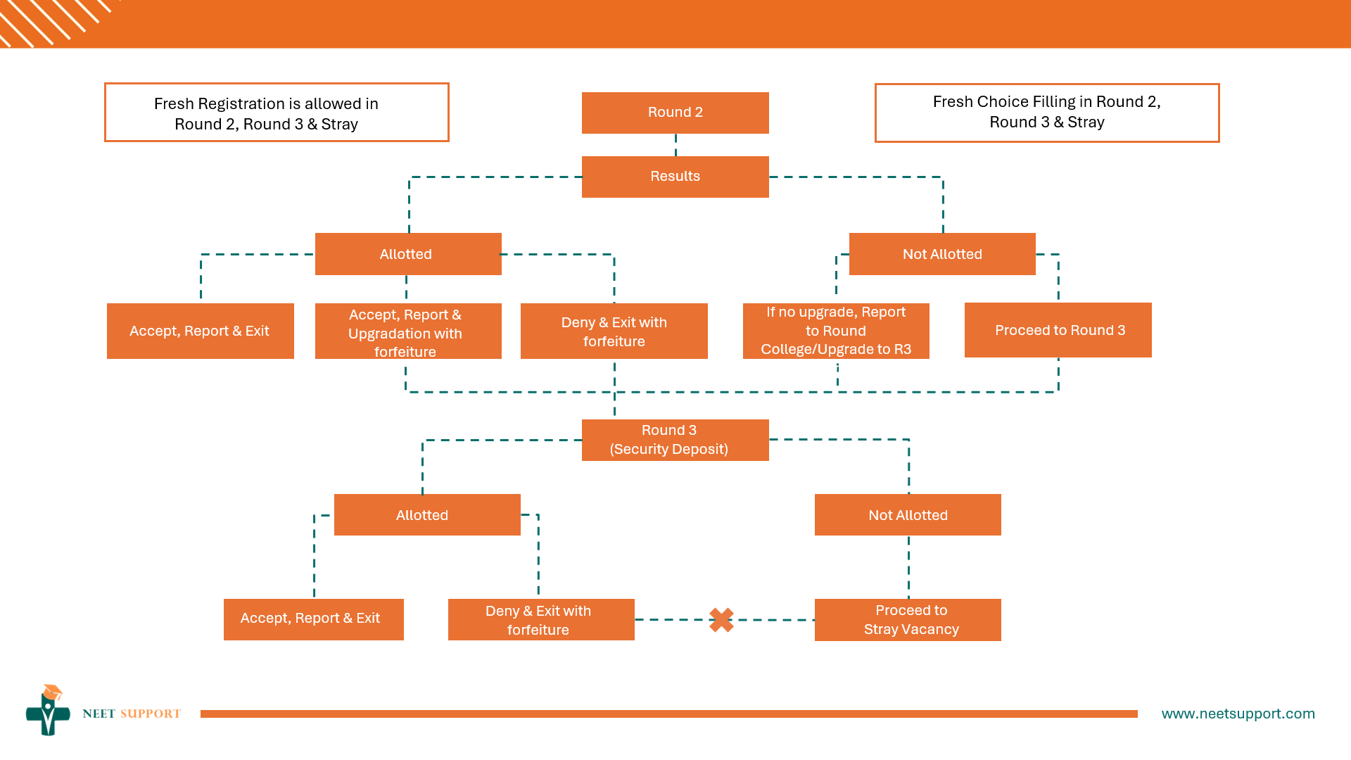 Stray Vacancy Round: Conducted at the institutional level for remaining seats after the mop-up round.